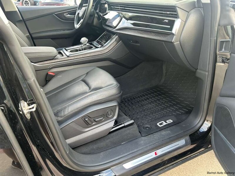 At the heart of the Q8 is a 3.0-liter turbocharged V6 engine with 48-volt mild-hybrid technology, producing approximately 335 horsepower and 369 lb-ft of torque. Paired with a smooth 8-speed Tiptronic automatic transmission and Audi’s legendary quattro® all-wheel-drive system, this SUV delivers confident acceleration, impressive road grip, and a refined driving experience. The Q8 can reach 0–60 mph in about 5.7 seconds, blending sports-car responsiveness with everyday practicality.