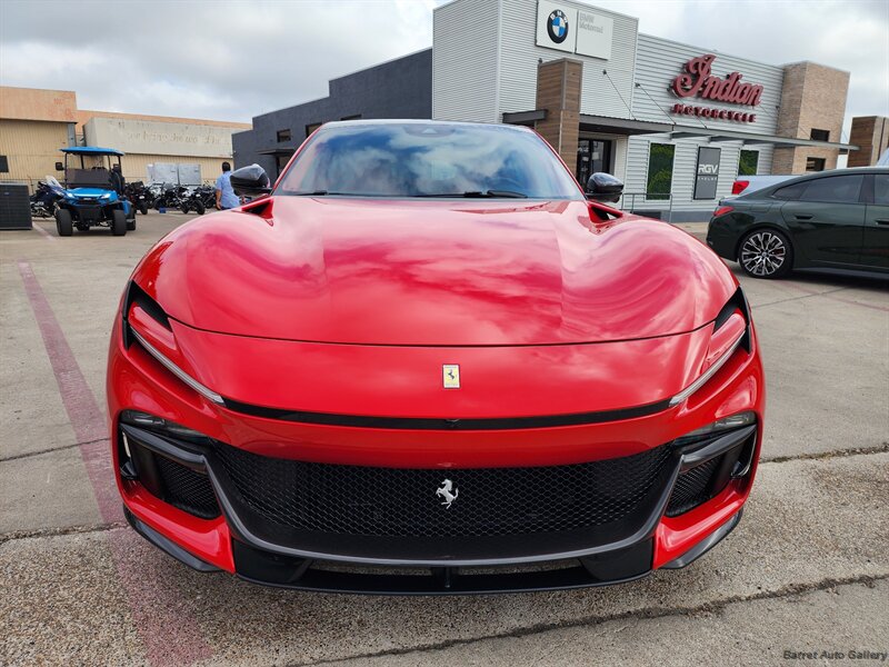 2026 Ferrari Purosangue in excellent overall condition with under 110 miles . Factory-standard equipment includes a naturally aspirated 6.5-liter V12 (approximately 715 hp) mated to an 8-speed dual-clutch transmission, performance-tuned adaptive suspension, four-wheel steering and advanced traction/torque management with selectable drive modes, carbon-ceramic brakes, LED headlights and aerodynamic exterior elements, premium leather four-seat interior with heated/ventilated front seats, dual-zone climate control, factory navigation and infotainment with smartphone integration (Apple CarPlay/Android Auto), premium audio, rearview camera and parking sensors, plus full complement of airbags, ABS and electronic stability control.