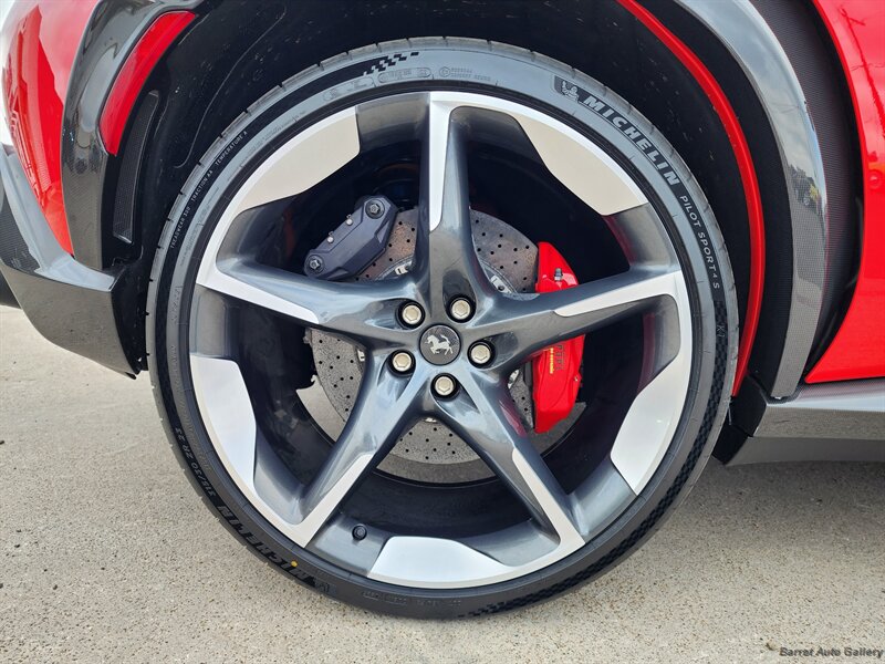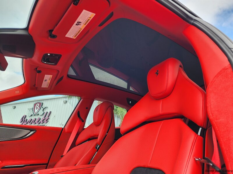 2026 Ferrari Purosangue in excellent overall condition with under 110 miles . Factory-standard equipment includes a naturally aspirated 6.5-liter V12 (approximately 715 hp) mated to an 8-speed dual-clutch transmission, performance-tuned adaptive suspension, four-wheel steering and advanced traction/torque management with selectable drive modes, carbon-ceramic brakes, LED headlights and aerodynamic exterior elements, premium leather four-seat interior with heated/ventilated front seats, dual-zone climate control, factory navigation and infotainment with smartphone integration (Apple CarPlay/Android Auto), premium audio, rearview camera and parking sensors, plus full complement of airbags, ABS and electronic stability control.